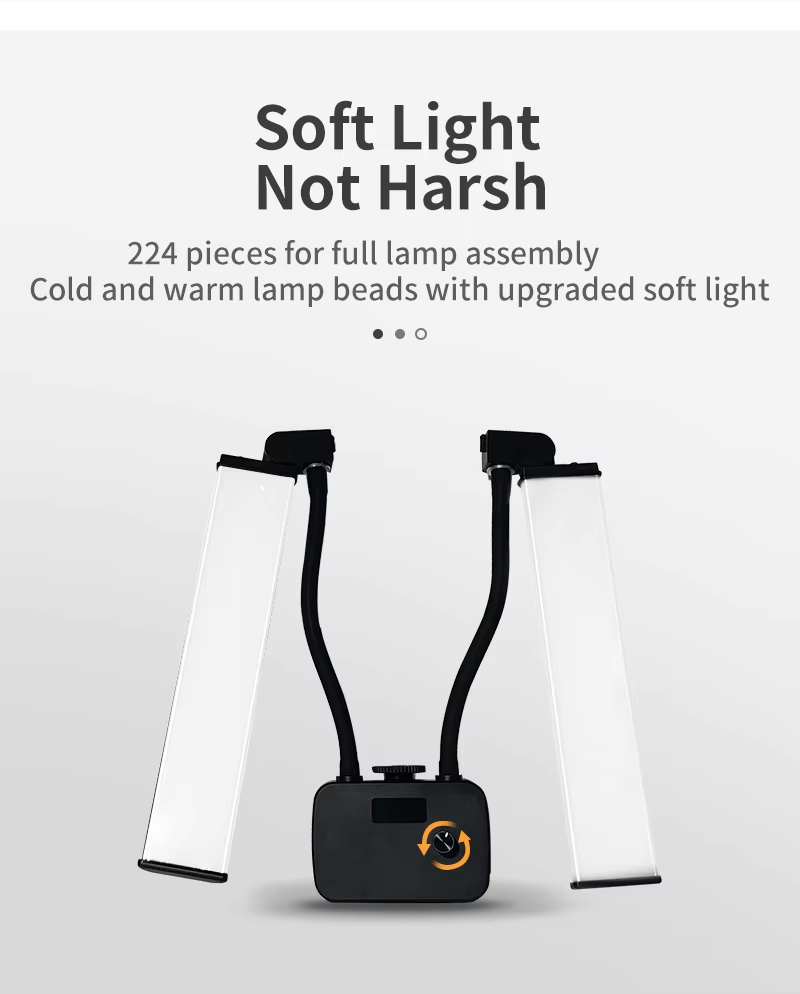★ 【Lash Light with 2 Modes】Comes with 224pcs LED beads(112pcs white color, 112pcs warm color). 45W output power, with white light and warm light. Color temperature is from 3000K to 6500K, the brightness can be adjusted from 10%-100%, gives you the flicker-free bright and even lighting. ★ 【Adjustable Double Arm Gooseneck Light】This double arm gooseneck light can be adjusted 360° as you like. More flexible and convenient. You can move the lights to any desired area or direction. ★ 【Adjustable Tripod Stand】The tripod stand is made of sturdy aluminum alloy, and the height can be adjusted from 26.65 inches to 78.74 inches, which is extremely useful in various outdoor or indoor lighting occasions. Comes with a large bag for easy portability.