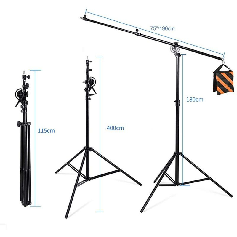The multi-function design of this boom stand allows for a wide range of lighting setups, making it suitable for various shooting scenarios. Whether you need to position your lights overhead for a dramatic effect, or off to the side for a more subtle fill, this stand can accommodate your needs with ease. The included sandbag adds an extra layer of security, ensuring that your lighting setup stays in place, even in high-traffic areas. This is especially important for busy photo studios or on-location shoots where safety and stability are paramount. With its durable construction and versatile design, this boom stand is a must-have for any professional photographer or videographer. It’s easy to set up and adjust, allowing you to focus on capturing the perfect shot without worrying about your lighting equipment.
