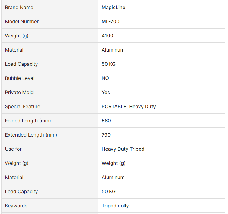 The all-metal ball bearing casters with rubber wheels ensure an ultra-smooth roll, while the sturdy construction is ideal for professional tripods. Whether you're using still cameras or camcorders, this tripod dolly provides steadier shots, allowing you to capture every moment with precision. Plus, it comes with a deluxe carrying case for easy transport and storage. Elevate your photography and videography experience with the MagicLine Tripod Dolly, equipped with tripod wheels and casters to enhance your creative pursuits. 1. MagicLine Tripod Wheels: Effortlessly adjust to fit most tripods for fast setup and take down. Enjoy ultra-smooth roll with all metal ball bearing casters and rubber wheels. 2. MagicLine Tripod Dolly: Heavy-duty construction ensures stability for professional tripods, providing steadier shots with still cameras and camcorders. 3. MagicLine Tripod Casters: Experience easy setup and take down with these durable wheels, designed for smooth rolling and professional use. 4. MagicLine Tripod Wheels: Achieve steady shots with still cameras and camcorders, thanks to the heavy-duty construction and ultra-smooth roll of these all-metal ball bearing casters. 5. MagicLine Tripod Dolly: Enjoy fast and easy setup with these high-quality wheels, providing stability and smooth movement for professional tripods. 6. MagicLine Tripod Casters: Ensure steadier shots with still cameras and camcorders, thanks to the heavy-duty construction and rubber wheels of these professional-grade casters. 7. MagicLine Tripod Wheels: Effortlessly adjust to fit most tripods and enjoy ultra-smooth roll with these all-metal ball bearing casters, perfect for professional use. 8. MagicLine Tripod Dolly: Includes a deluxe carrying case for easy transport, providing stability and smooth movement for professional tripods.