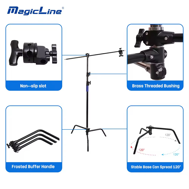 Brand: magicLine Max. height: 40 inch Min. height: 133cm Folded length: 133cm Boom arm length: 100cm Center column sections : 3 Center column diameters: 35mm--30mm--25mm Leg tube diameter: 25mm Weight: 8.5kg Load capacity: 20kg Material : steelMagicLine Black Light C Stand with Boom Arm (40 In06