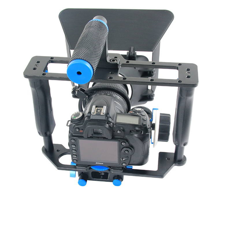 Are you tired of struggling to achieve smooth and precise focus while shooting? Do you want to enhance the quality of your videos with professional-grade equipment? Look no further than our Camera Cage with Follow Focus & Matte Box. This innovative and versatile system is designed to take your filmmaking to the next level, providing you with the tools you need to capture stunning, professional-quality footage. The Matte Box included in this system is a game-changer for filmmakers. With its 15mm rail rod support system, it is suitable for lenses less than 100mm, allowing you to control light and reduce glare for impeccable image quality. Whether you’re shooting in bright sunlight or low-light conditions, the Matte Box ensures that your footage is free from unwanted artifacts and distractions, giving you the freedom to focus on your creative vision. The Follow Focus component of this system is a marvel of engineering. Its completely gear-driven design ensures slip-free, accurate, and repeatable focus movement, allowing you to achieve precise focus pulls with ease. The Follow Focus mounts onto a 15mm/0.59" Rod Support with a 60mm/2.4" center-to-center difference, providing stability and flexibility for seamless focus control. Say goodbye to manual focus struggles and hello to smooth, professional focus transitions. The Camera Cage included in this system is the epitome of form, function, and versatility. Its form-fitting and exquisite design ensures that your camera is securely housed, while its multi-functional capabilities allow for high compatibility with a wide range of camera models. Attaching and detaching the Camera Cage is a breeze, giving you the freedom to adapt to different shooting scenarios without missing a beat. Whether you’re a seasoned filmmaker or a passionate enthusiast, our Camera Cage with Follow Focus & Matte Box is a must-have addition to your gear arsenal. Elevate your filmmaking capabilities and unleash your creativity with this comprehensive and professional-grade system. Say goodbye to the limitations of standard camera setups and embrace the power of precision, control, and quality with our innovative Camera Cage with Follow Focus & Matte Box.