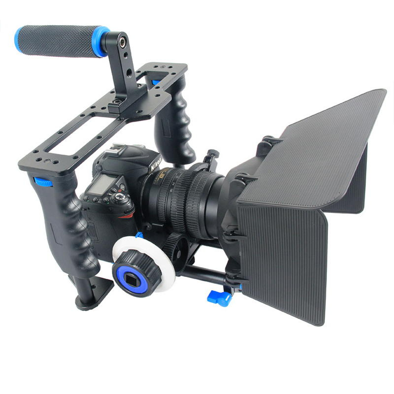 Net weight: 1.6 kg Load capacity: 5 kg Material: Aluminum + Plastic Matte box fits lens less than 100mm sizes Suitable for: Sony A6000 A6300 A7 A7S A7SII A7R A7RII, Panasonic DMC-GH4 GH4 GH3, Canon M3 M5 M6, Nikon L340 etc Package Includes: 1 x Camera Rig Cage 1 x M1 Matter Box 1 x F0 Follow Focus