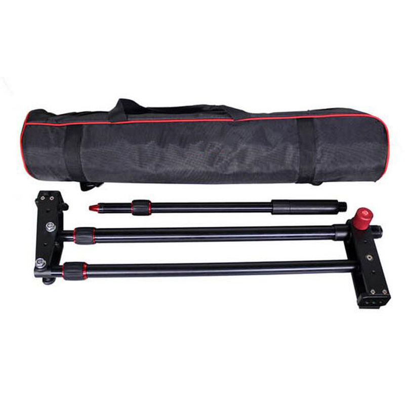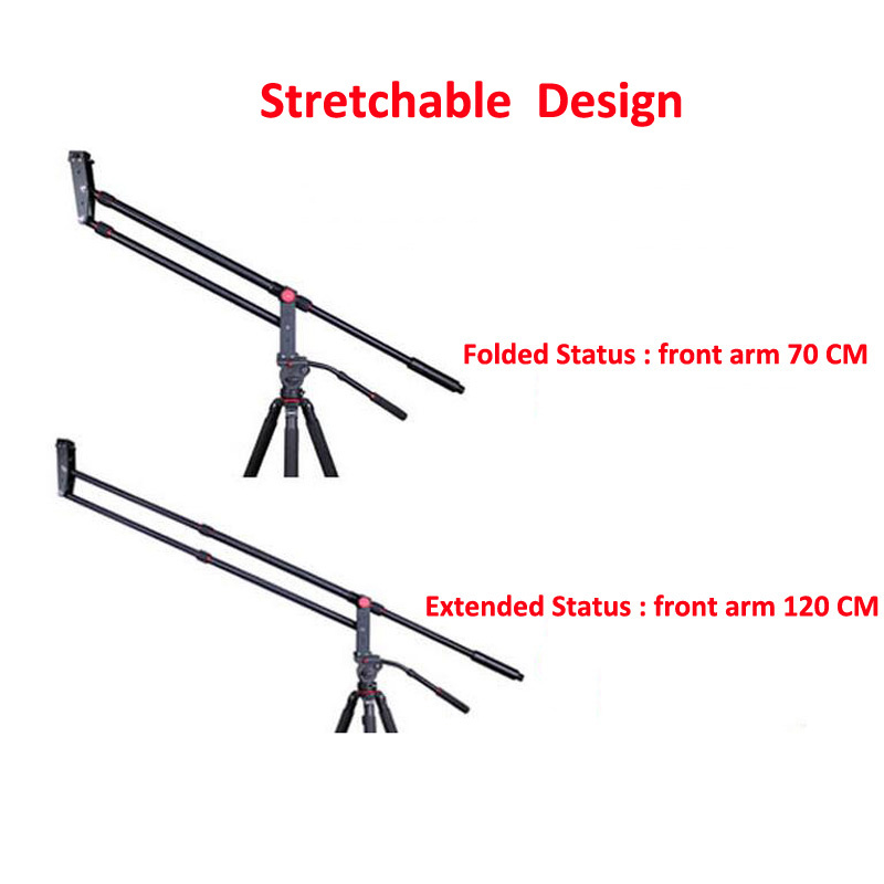 1. Strong versatility: This jib crane can be mounted at any tripod. It is a very useful tool for moving left, right, up, down, leaving you expected flexibility and minimizing awkward moving. 2. Function extension: Equipped with 1/4 and 3/8 inch screw holes, it is not only designed for camera and camcorder, but also other lighting equipment, such as LED light, monitor, magic arm, etc. 3. Stretchable design: Perfect for DSLR and Camcorder moving making. Front arm can be stretched out from 70 cm to 120cm; optimal choice for outdoor photographing and filming. 4. Adjustable angles: Shooting angle will be available for adjusting to different direction. It can be moved up or down and left or right, which makes it a useful and flexible tool when photographing and filming. 5. Comes with carrying bag for storage and transportation. Remarks: Counter balance is not included, users can buy it in the local market.