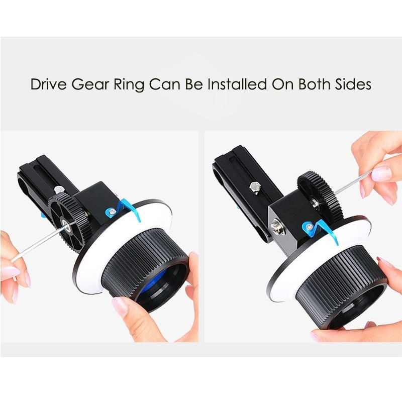 The ergonomic design of the follow focus makes it comfortable to use for extended periods, reducing fatigue and allowing you to stay focused on capturing the perfect shot. The smooth and responsive focus control knob enables precise adjustments, giving you the freedom to unleash your creativity and bring your vision to life. With its easy-to-install design, our follow focus system can be quickly mounted onto your camera rig, allowing you to start shooting in no time. The adjustable gear ring ensures a secure and stable connection, giving you peace of mind while you focus on your creative process. Whether you’re a professional filmmaker, a passionate photographer, or a content creator looking to elevate your work, our Professional Camera Follow Focus with Gear Ring is the ideal tool to take your craft to the next level. Say goodbye to the frustration of manual focusing and embrace the precision and control that our follow focus system provides. Invest in the Professional Camera Follow Focus with Gear Ring and experience the difference it can make in your photography and videography projects. Elevate your work and capture stunning, professional-quality shots with ease and confidence.