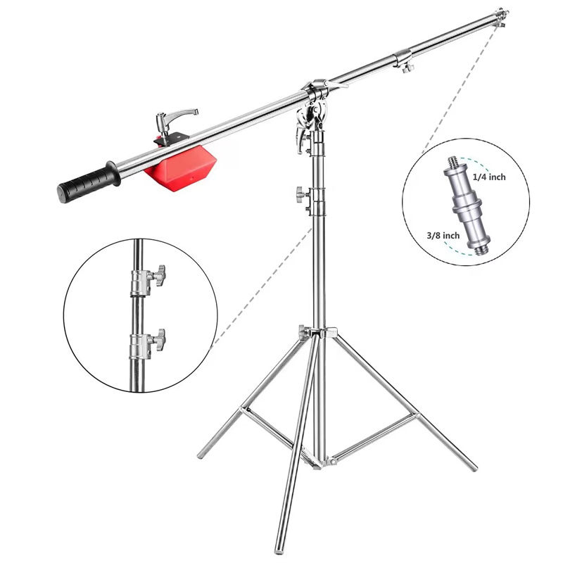 MagicLine stainless steel boom light stand, complete with support arms, counterweights, cantilever rails and retractable boom brackets - providing photographers and videographers with a versatile and reliable lighting solution. This sturdy and durable light stand is made of high-quality stainless steel to ensure stability and longevity even under heavy loads. The support arm allows you to easily position and adjust the light, providing the flexibility you need for a variety of shooting setups. Counterweights keep your lighting equipment securely in place, giving you peace of mind during your shoot.
