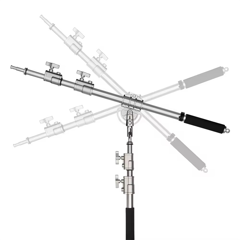 MagicLine versatile and practical Stainless Steel Studio Photo Telescopic Boom Arm Top Light Stand Cross Arm Mini Boom chrome-plated! This innovative product is designed to enhance your photography studio setup by providing a stable and flexible solution for positioning your lights and accessories. Crafted from high-quality stainless steel, this telescopic boom arm is not only durable but also corrosion-resistant, ensuring long-lasting use. The chrome-plated finish adds a sleek and professional touch to your studio environment, making it stand out among your other equipment.