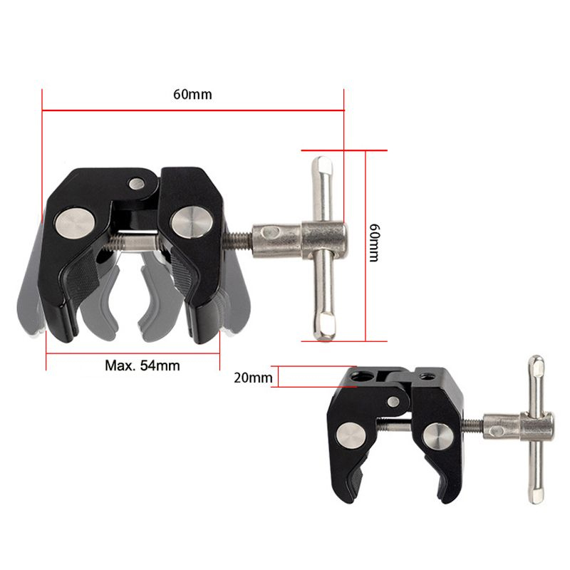The Large Super Clamp Crab Plier Clip Holder is a key component of this system, offering a secure grip on a wide range of surfaces, such as poles, tables, and shelves. With its powerful clamping mechanism, you can trust that your gear will stay in place, giving you peace of mind during intense shooting sessions. This versatile mounting solution is ideal for a variety of applications, including photography, videography, live streaming, and more. Its compatibility with cameras, LCD monitors, and other accessories makes it a valuable addition to any professional’s toolkit. Whether you’re a seasoned professional or an aspiring enthusiast, the Metal Articulating Magic Friction Arm Large Super Clamp Crab Plier Clip Holder for Camera LCD is designed to enhance your workflow and expand your creative possibilities. With its combination of durability, flexibility, and ease of use, this product is sure to become an essential part of your gear collection. Upgrade your setup today and experience the difference that this innovative mounting solution can make in your work.