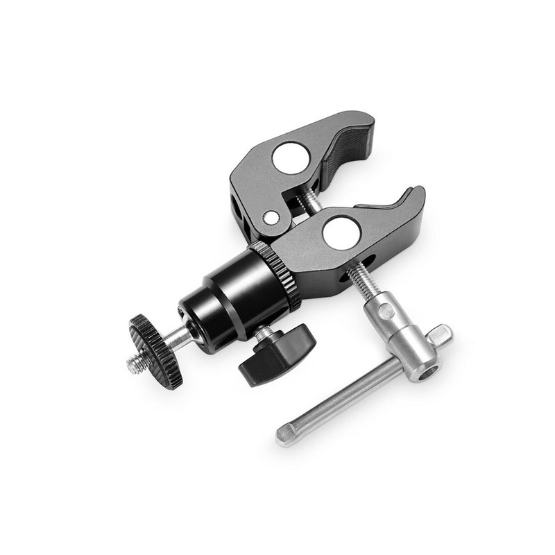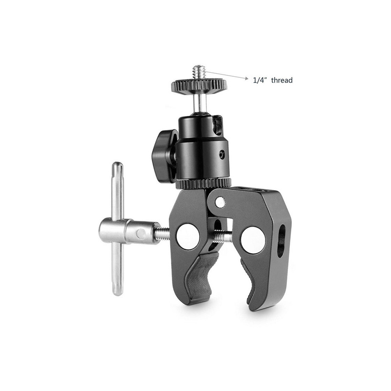 ★This Super Cool Clamp mount with 1/4" screw, made of Aviation Alloy. Comes with a clamp at the bottom and a 1/4" screw on the top. ★Mounts onto anything like cameras, lights, umbrellas, hooks, shelves, plate glass, cross bars, even other Super Clamps. ★Cool Clamp can MAX open 54mm, and minimum 15mm rods; It could attach and detach from the monitor quickly and the position of the monitor is adjustable as per your needs during shooting. ★Comes with 1/4"-20 Camera Hot Shoe Mount w/ a Swivel Ball-Head,360-degree articulation, for cameras such as for Canon, for Nikon, for Olympus, for Pentax, for Panasonic, for Fujifilm & for Kodak. ★You can take off the articulating arm part and change it to a cold shoe clamp mount! ★Comes with 1/4"-20 and 3/8"-16 thread, can be mounted virtually anywhere. The best load<3kg. ★Package Includes: 1 x Clamp Mount 1 x 1/4"-20 Screw 1 x Hex Spanner