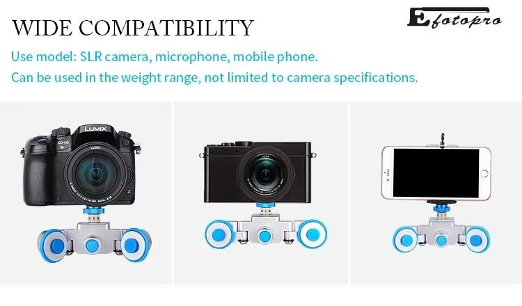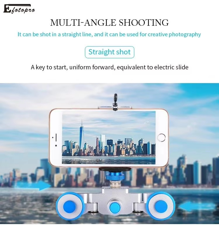 The three-wheel design ensures smooth and seamless movement, allowing you to capture dynamic shots from various angles. The dolly car can be easily controlled and maneuvered, giving you the freedom to explore different filming techniques and styles. Equipped with a durable and reliable construction, this dolly car is built to withstand the demands of regular use. Its compact and lightweight design makes it easy to transport and set up, making it an ideal companion for on-the-go filming. Whether you’re shooting product demonstrations, vlogs, or cinematic sequences, the Three Wheels Camera Auto Dolly Car offers endless creative possibilities. Its silent motor operation ensures that your audio remains clear and uninterrupted, allowing you to focus on capturing the perfect shot. The dolly car is also compatible with a range of accessories, such as smartphone mounts and camera rigs, allowing you to customize your setup to suit your specific filming needs.