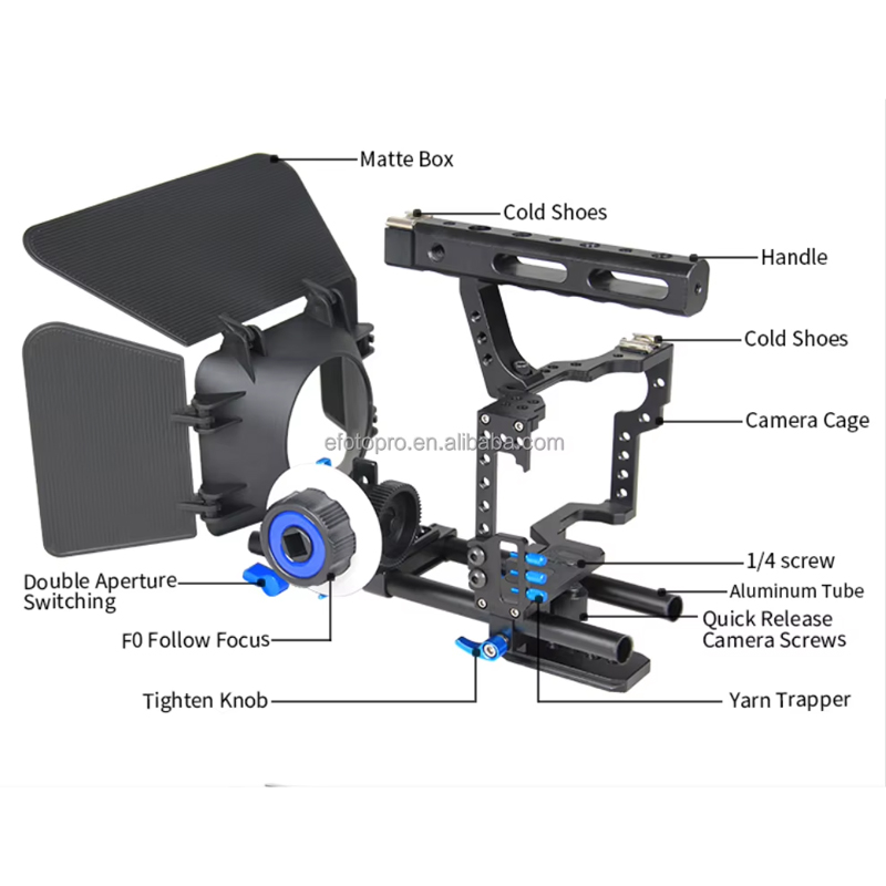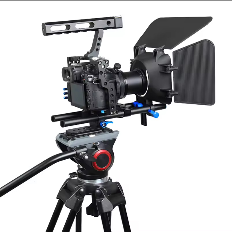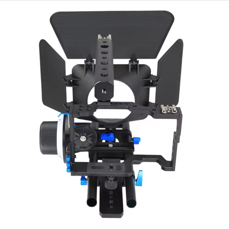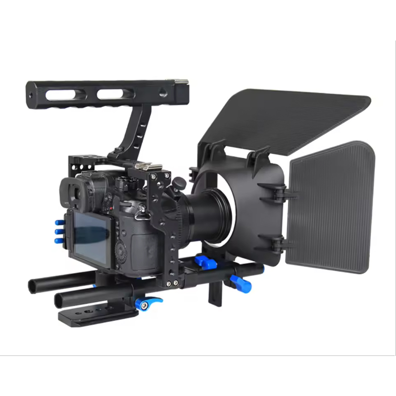 Included in the kit is a follow focus system, allowing for precise and smooth focus adjustments while shooting. This feature is essential for achieving professional-looking results and is a must-have for any serious filmmaker. Additionally, the matte box included in the kit helps to control light and reduce glare, ensuring that your footage is free from unwanted reflections and flares. This is particularly useful when shooting in bright or outdoor environments, allowing you to maintain full control over the visual aesthetic of your film. Whether you are shooting a documentary, a narrative film, or a music video, our Video Camera Handheld Cage Kit provides you with the essential tools to elevate your production value and achieve your creative vision. The kit is designed to be versatile and adaptable, making it suitable for a wide range of shooting scenarios and styles. With its professional-grade construction and comprehensive set of features, our Video Camera Handheld Cage Kit is the perfect choice for filmmakers and videographers who demand the best from their equipment. Elevate your filmmaking capabilities and take your productions to the next level with this essential kit.